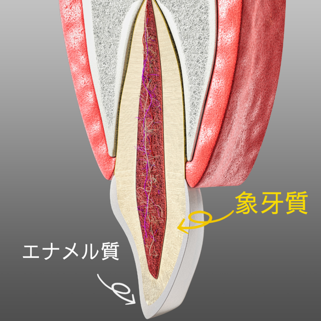 歯の白さを左右しているのは、実は歯の外側のエナメル質ではなく、内側にある象牙質の色です。